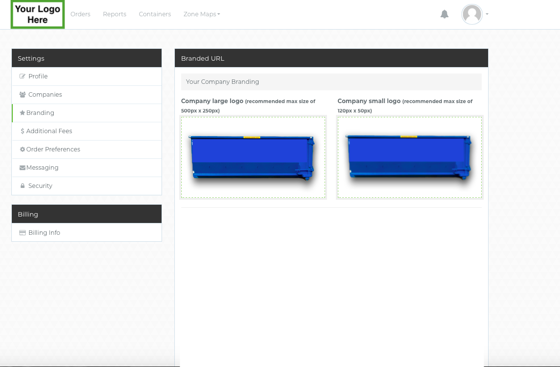 We built this to promote YOUR identity, not ours. At every turn, it is YOUR dumpster images, YOUR branding, YOUR pricing, YOUR zones.